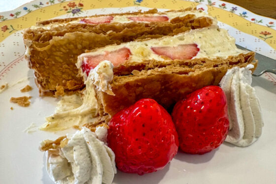 入り口にはいかにも美味しそうな、しかも高そうなイチゴのミルフィーユの写真が。