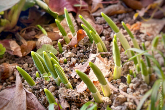 今は落ち葉の中から大好きなスノードロップの芽が出ている。