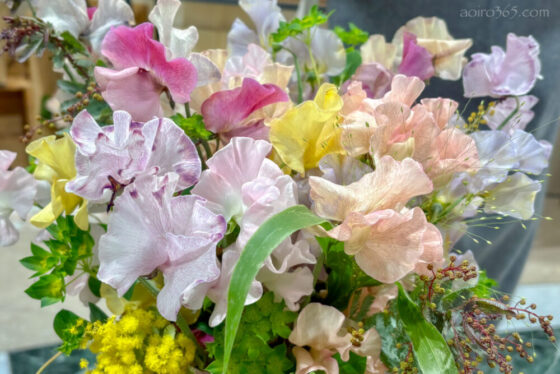 もう6年前になるのか、病院で膠原病と診断された帰り、倉敷駅にスイートピーがドドーンと飾られていて、随分癒されたのを覚えている。