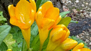 今年はもう遅いかと思ってたところ、葉っぱは出ていたものの、まだ頑張って塊のように花をつけていた。